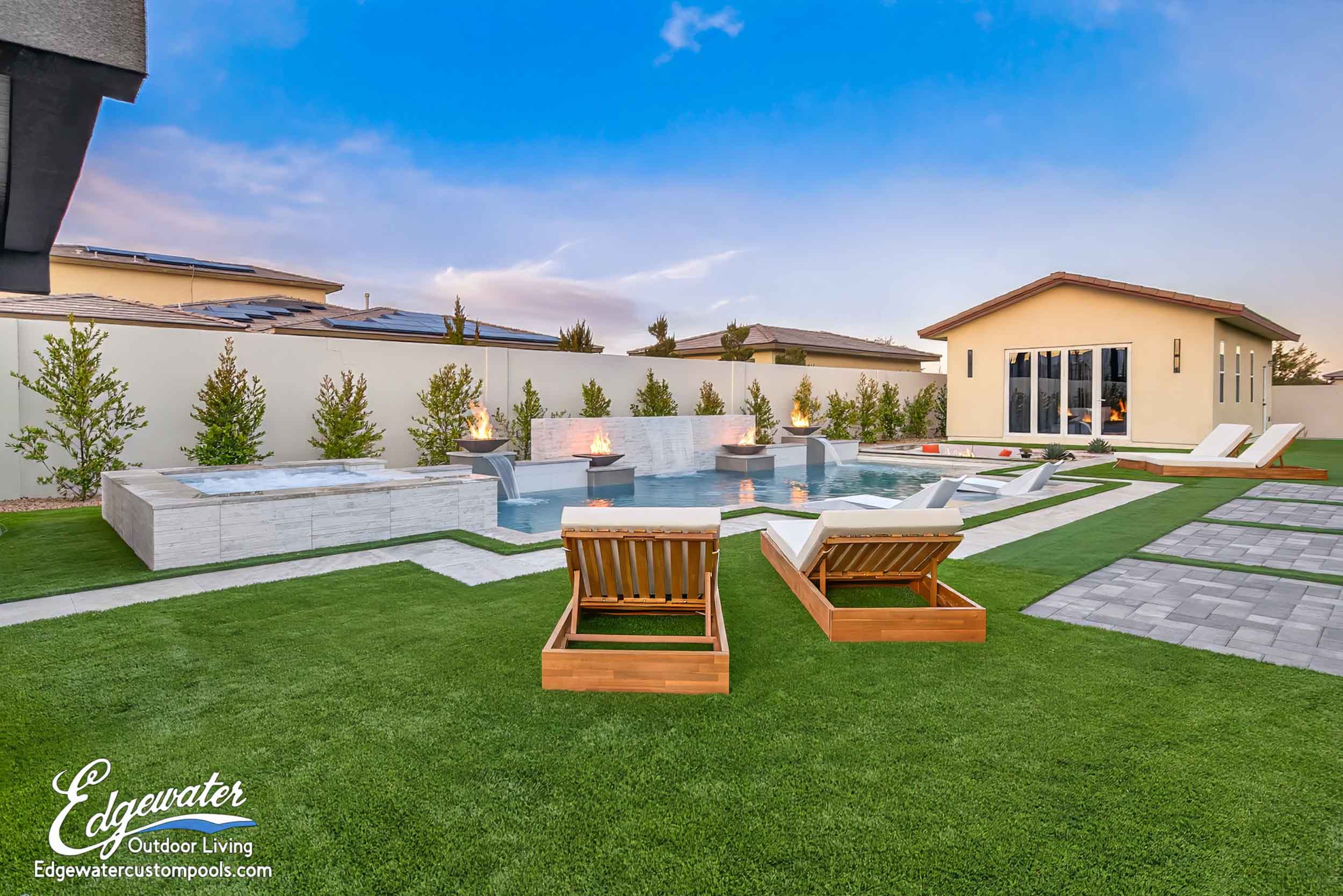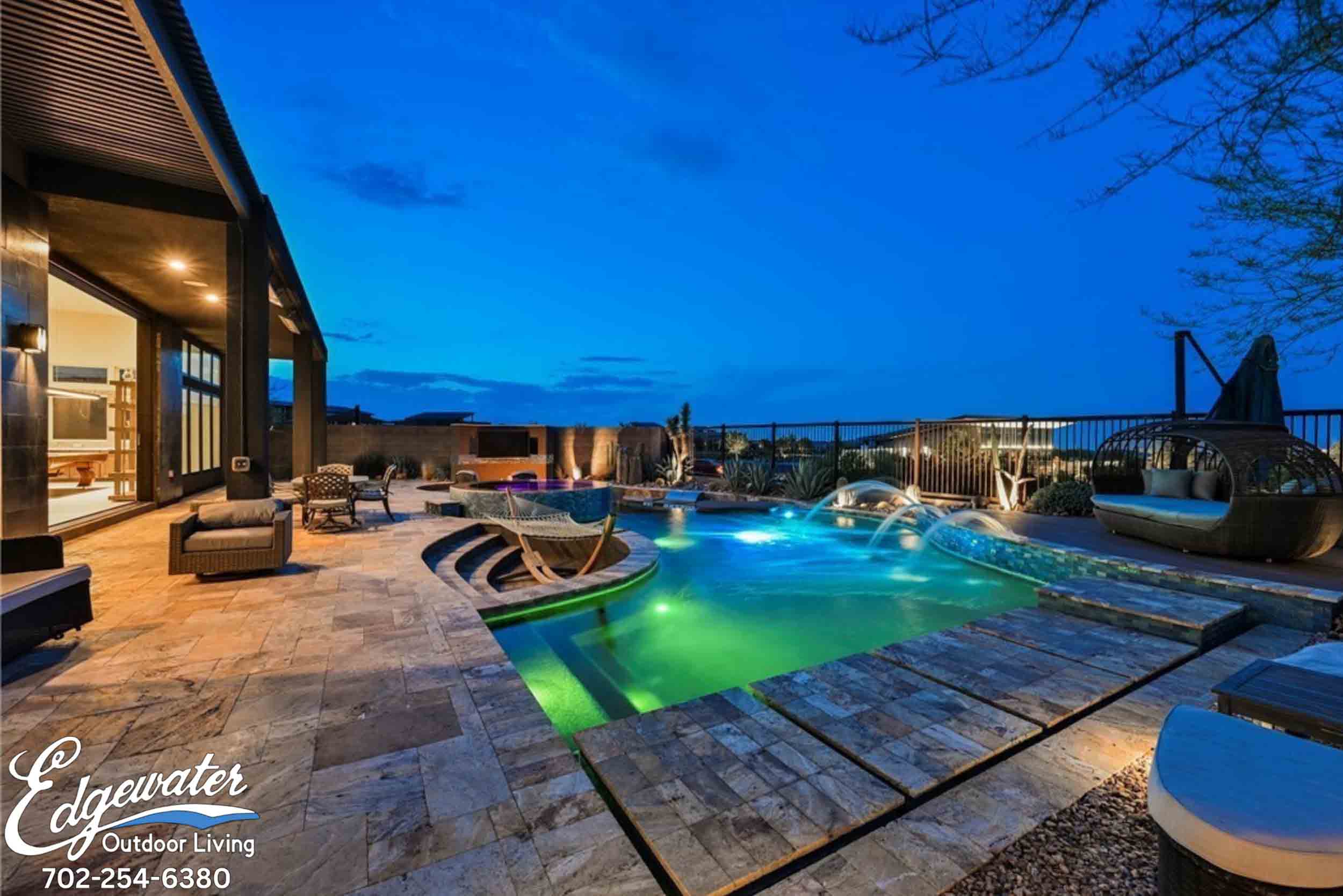 Posted on Kimber YoungTrustindex verifies that the original source of the review is Google. I was very happy with the service and landscaping I received from Edgewater. Dan was super helpful with design and keeping on budget. The office staff was very responsive to my questions and the crew were all professional and did an amazing job on our backyard project.Posted on DaveTrustindex verifies that the original source of the review is Google. The Edgewater team exceeded all expectations from start to finish. Starting with the owners Dan and Mike, to the administrative team and most importantly the the day to day supervisor Rupert and his team. We would highly recommend them for all of your pool and landscaping needs.Posted on Jeff JonesTrustindex verifies that the original source of the review is Google. OUTSTANDING...Outstanding design, outstanding quality, outstanding work, outstanding communication, outstanding follow through, outstanding timeframe; one word Outstanding! There is a reason Edgewater gets voted "Best of Las Vegas" every year; they deserve it. Don't waste your time; call them today for all of your pool related needs; you will be glad you did.Posted on Steve ArmbrustTrustindex verifies that the original source of the review is Google. We had ideas for a pool in our small backyard. Asked Edgewater to provide a quote, and upon their visit, learned our idea would not work due to HOA and city restrictions. Edgewater proposed a different design that worked great and led to our beautiful new pool/spa/firepit! They were easy to work with/reliable and completed the project sooner than expected. We are very pleased with the final result and highly recommend Edgewater!Posted on Robert BriceTrustindex verifies that the original source of the review is Google. Edgewater was recommended from a friend who had a pool built . I have been very satisfied with their attention to detail and the promptness of their responses . As with any project there will be issues ,and they were very quick to address and correct any issues or concerns that we had . I highly recommend Edgewater Pool & Landscaping to anyone looking to do any workPosted on Theresa BassoTrustindex verifies that the original source of the review is Google. Edgewater Pools was wonderful to work with. It was such an easy process from start to finish. Everyone we worked with was professional and respectful. We would like thank Aria for her expertise and keeping us well informed throughout the process. We would also like to thank Roberto and Hector for checking on the progress everyday. They were also very professional and great to work with. The only thing we were disappointed about was the tile on the back side of the spa. We didn’t know all 4 sides would not be tiled. Other than that I highly recommend Edgewater Custom Pools. From start to finish it was 7 weeks! Thank you Edgewater and Michael who was a great salesman we are so excited with our pool and spa and cannot wait to create new memories with Family and Friends. Mike and Theresa BassoPosted on Kati BoothTrustindex verifies that the original source of the review is Google. We are first time pool owners and Edgewater made it so easy. Great communication and they show up when scheduled. We love the design of the pool and landscape of our backyard. We had one of the plants die and they replaced it no questions. We would highly recommend them. They are awesome!!Posted on Sandra BrewerTrustindex verifies that the original source of the review is Google. I had a great experience with Edgewater! Every step the workers did a great job! The office answered all my questions a responded quickly. Thanks to all the teams that came out and did their part. We will enjoy our backyard even more.Posted on BRIDGETTE PETTICHORDTrustindex verifies that the original source of the review is Google. Edgewater pools did a great job, they are very efficient, fast and thing get done when they say they will! We are very happy with our PoolPosted on Nana AllenTrustindex verifies that the original source of the review is Google. We have had the best service from design to construction with Edgewater Pool! The highly skilled designers and construction crews are by far the best ! They always kept us completely informed of the entire process and they never left a mess ! Extremely professional and we highly recommend this company !