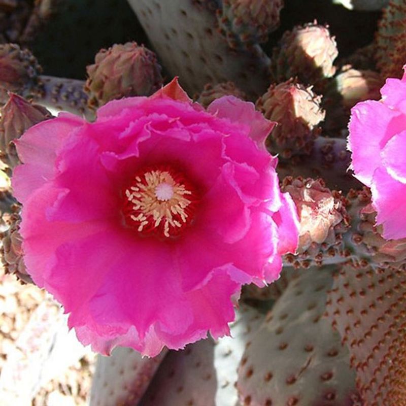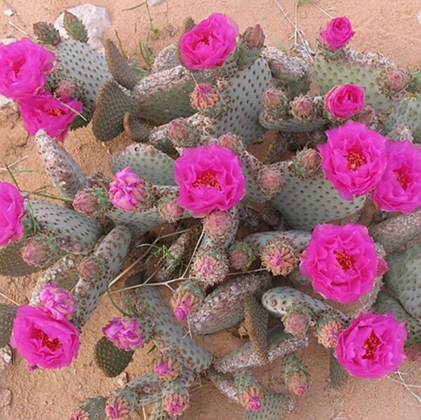 Named for the shape of its pads. This low branching Cactus, to 2 x 3 feet, is excellent for dry landscapes. Plant in full sun, any well-drained soil, deep, infrequent water once established. Handle with care, soft hair like spines are hard to get out of your skin!
