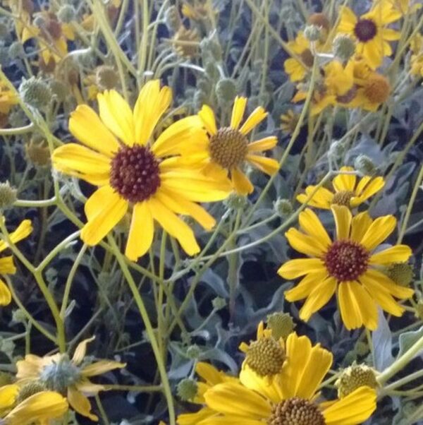 This versatile Southern Nevada native reaches 3 x 3 feet with yellow flowers in spring; a must for any dry area. Plant in full sun, well drained soil, deep infrequent water once established. No feeling needed; reseeds readily.