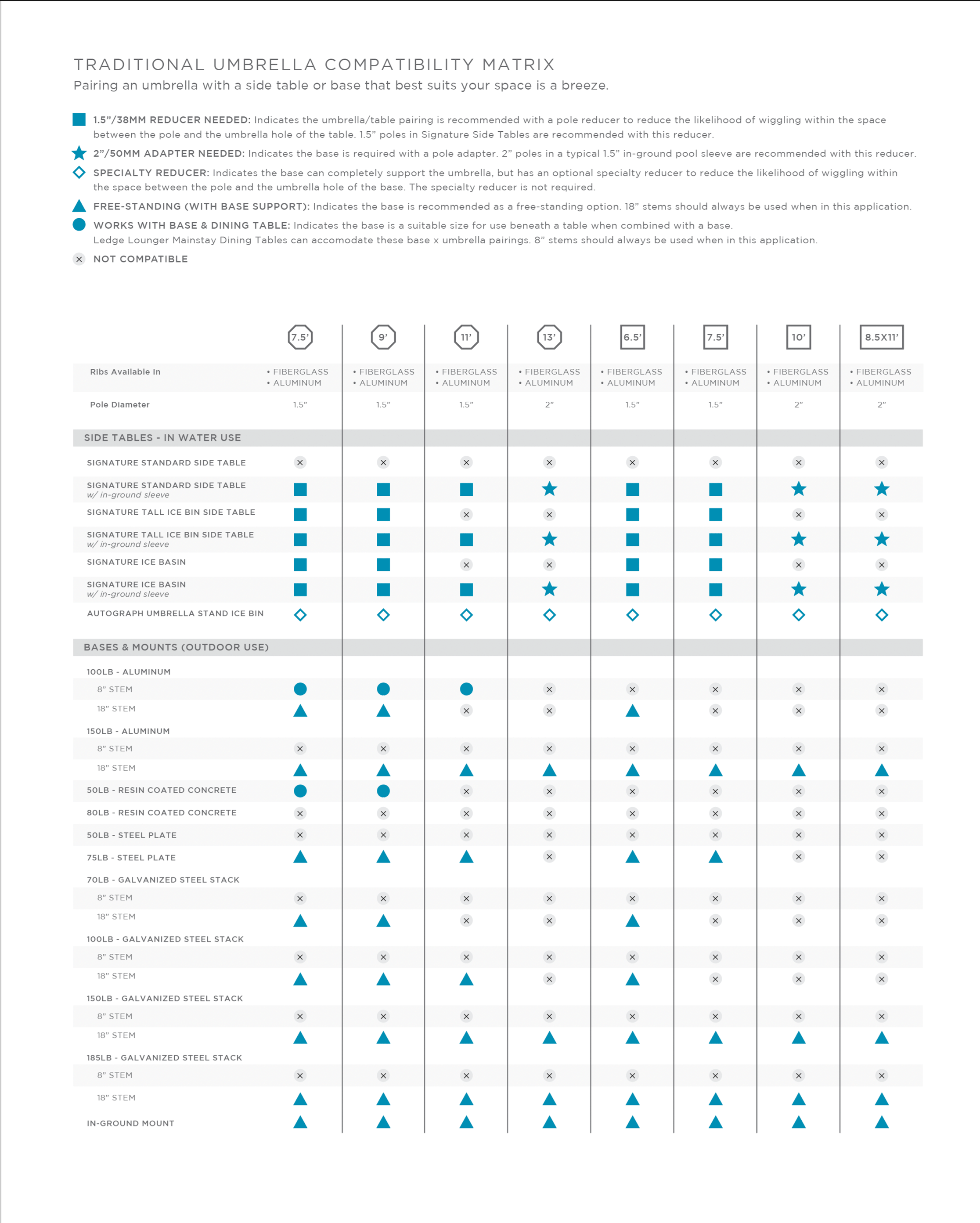 For more information about pairing your umbrella with the proper base or furniture, check out our Traditional Umbrella Compatibility Matrix.