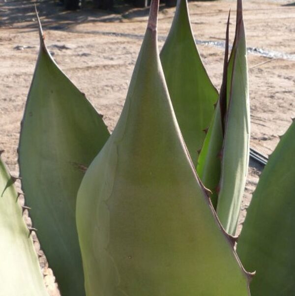 Large Agave develops urn-shaped rosette with 1 x 3 foot leaves curving inward. It forms colonies by offsets and will produce a large flower stalk, once in its lifetime, after approximately 10 years or more. Likes full sun, any soil, deep infrequent water once established.