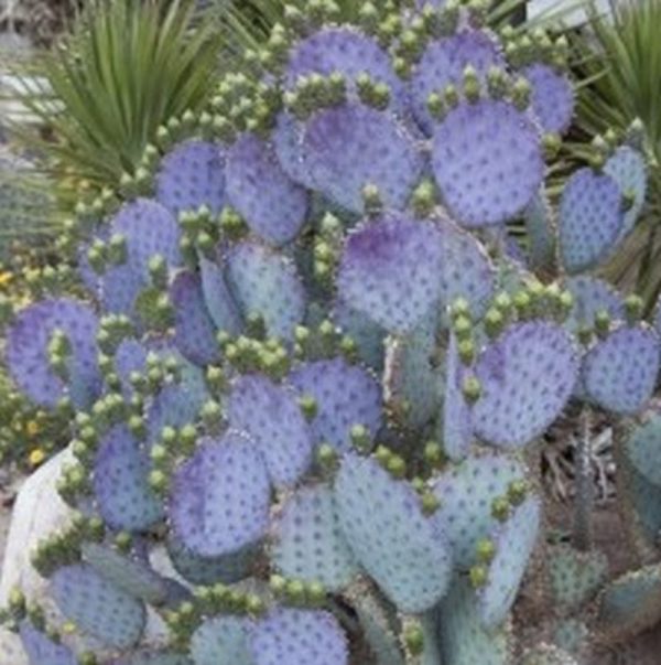 Pretty hybrid variety to 4 x 6 feet; pads turn bright maroon in winter. Marked by striking red based yellow flowers in spring. Excellent drought tolerant landscape specimen or potted Plants. Deep infrequent water, withholding water in winter.